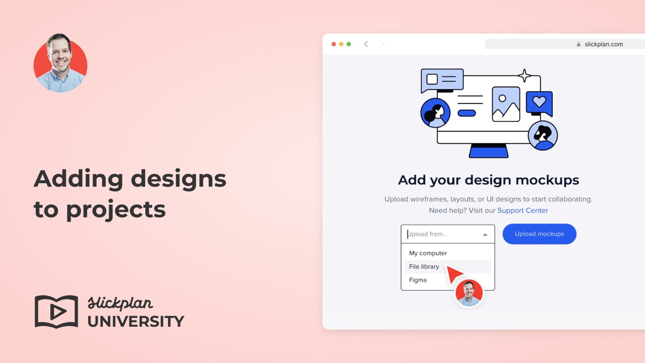 Adding design mockups – front-end web design, app UI/UX, or low-fidelity wireframes – is simple and effective for sharing with your team or clients.