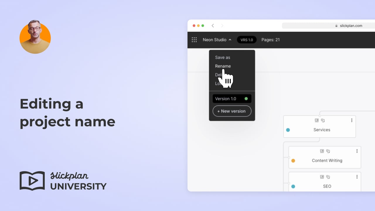 - To edit a project’s name, open it and click on its name from the left of the navigation bar to open the File menu.
