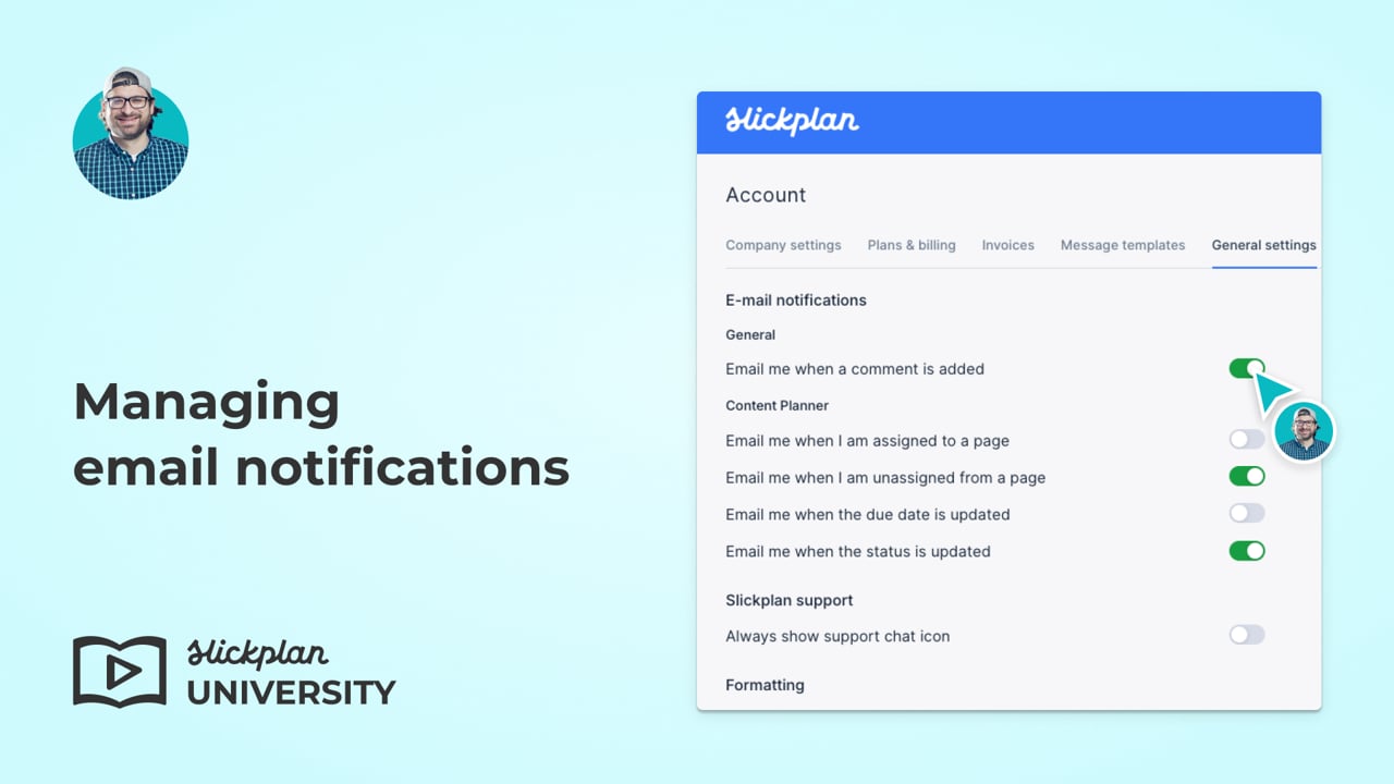 Note: Slickplan by default only sends content notifications to assigned team members. This applies regardless of whether you’re an owner or an admin. To receive update notifications, you’ll need to be assigned to the specific project pages you want to follow.
