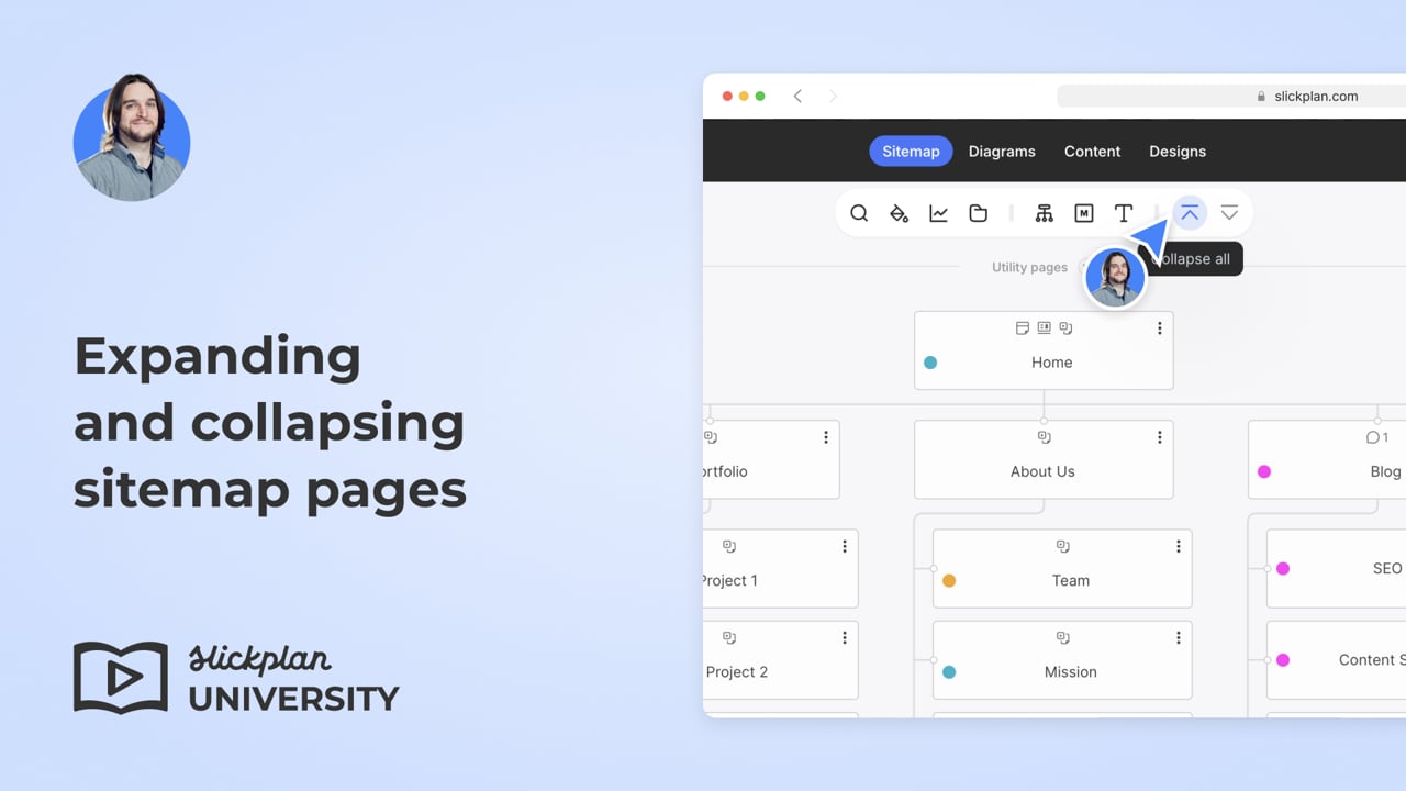 - To collapse or expand all pages of your sitemap, use the Collapse All or Expand All buttons on the toolbar.