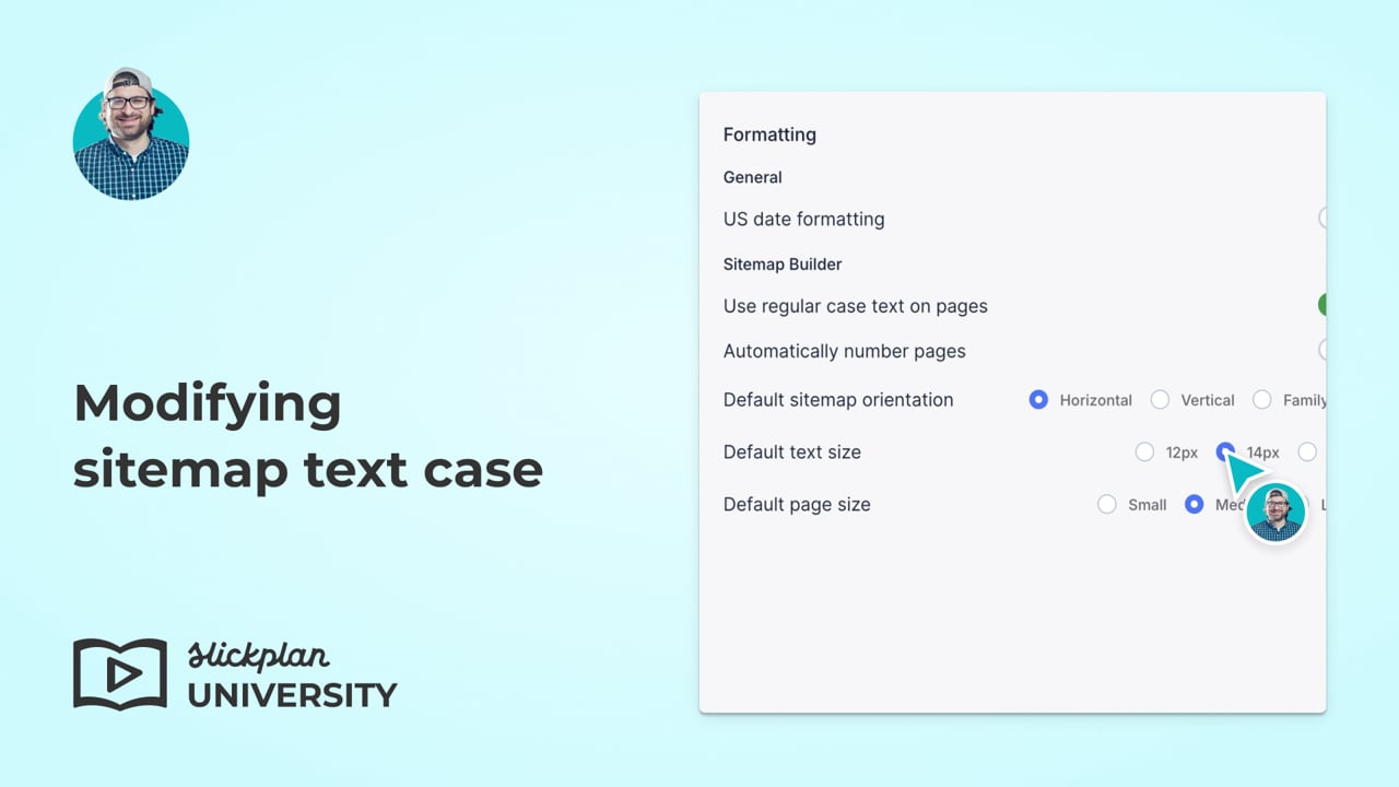 - To change the text case on sitemap pages globally, navigate to My Profile and select General settings.