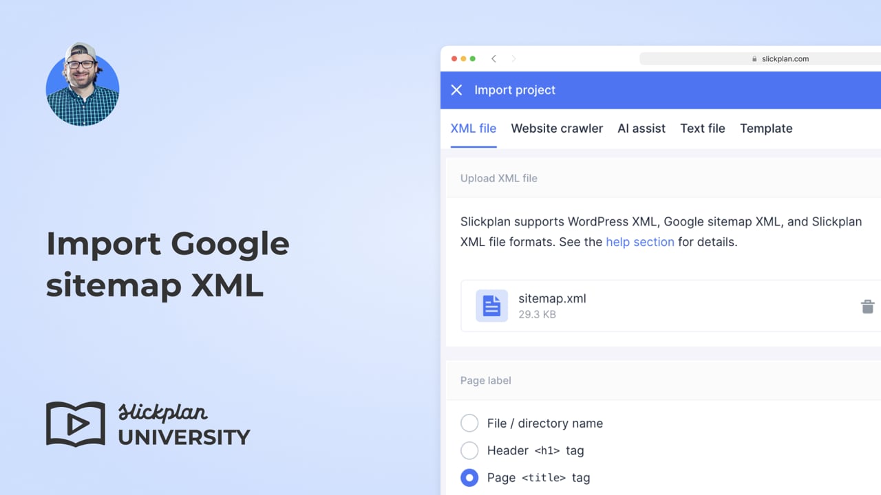 Importing a Google XML sitemap is done using Slickplan’s proprietary website crawler and is available only to Pro, Team, and Agency users.