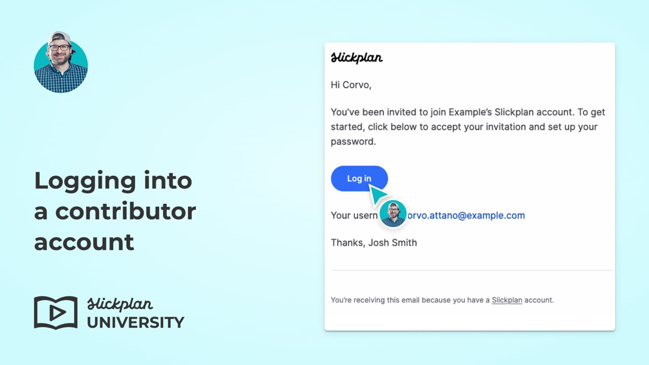 To log in to Slickplan, contributors need to use a specific subdomain URL instead of the general login form on the main website. This directs them to the right workspace for their project. The subdomain URL can be found in the invitation email sent to contributors.