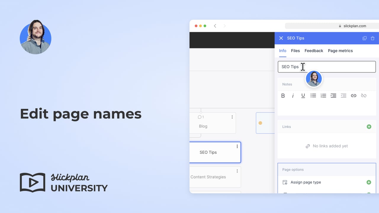 - Once you type the new name, the changes are saved automatically and will instantly update on the sitemap.