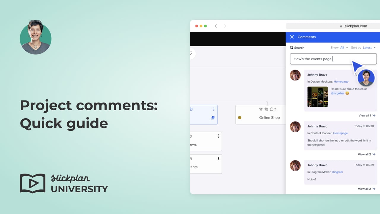 One of the most significant advantages of our Slickplan sitemap builder is teamwork. While working on the same project, your team members can add general comments or post comments to selected pages and content blocks in real time.