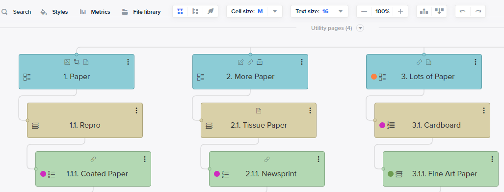 - Choose between 12px, 14px, or 16px. You’ll see the text size change automatically on your sitemap pages.